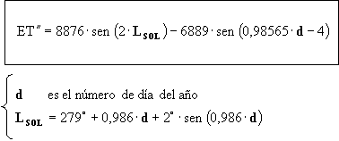 | Hora Solar Verdadera (HSV) – Hora Solar Media (HSM) = Ecuación del Tiempo (ET) |